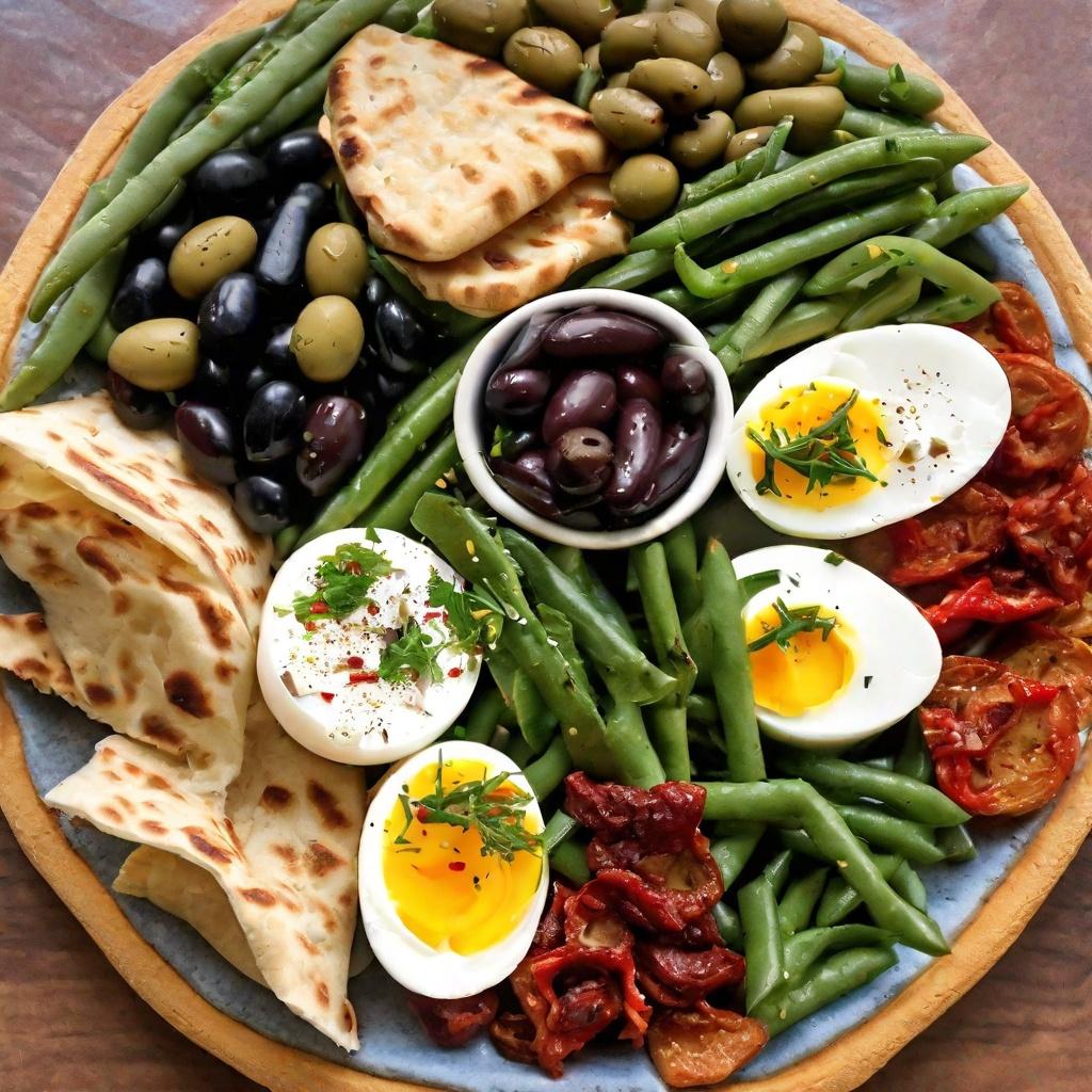 Mix it up a little with a Mediterranean veggie mix – olives, sun-dried tomatoes, green beans, potatoes, and eggs – served with wedges of whole-wheat pita....