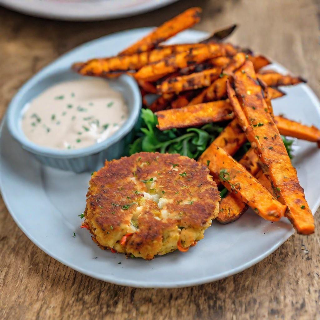 Crab cakes and fries don’t have to be unhealthy – not when you make the crab cakes yourself and use sweet potato fries that you bake, not fry. ...